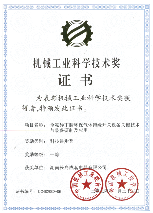 本次当选国家级专精特新“小巨人”企业的长高成套公司,是长高电新(集团)下属专注研发生产高低压成套电器设备的子公司,是国家级高新技术企业。公司依托母公司国家级企业技术中心、国家工业强基工程等5个国家级研发创新平台,始终坚持以研发创新作为自身高质量发展的内生动力,是国内首批参与智慧变电站改造工程的企业之一,也是国内首批将节能环保气体工程化应用到产品的企业之一。公司研发的CGIS-12(Z)/T1250-31.5户内环保气体绝缘金属封闭开关设备、CGIS-12(Z)/T3150-40户内环保气体绝缘金属封闭开关设备两项产品被鉴定为技术达到“国际领先水平”,与中国电科院、安徽省电力公司联合研发的全氟异丁腈气体环网柜被鉴定为技术达到“国际先进,国内领先水平”。公司还获得了中国机械工业科学技术奖一等奖、中国电工协会科技进步奖一等奖等多项荣誉。同时公司持续引进国内外先进生产线,拥有萨瓦尼尼数控钣金柔性生产线、开关柜自动装配生产线、AGV充气柜自动生产线、环网柜自动生产线、断路器全自动生产线等8条国内行业领先的成套装备数字化生产线,被评为“国家级数字化智能制造示范车间”。